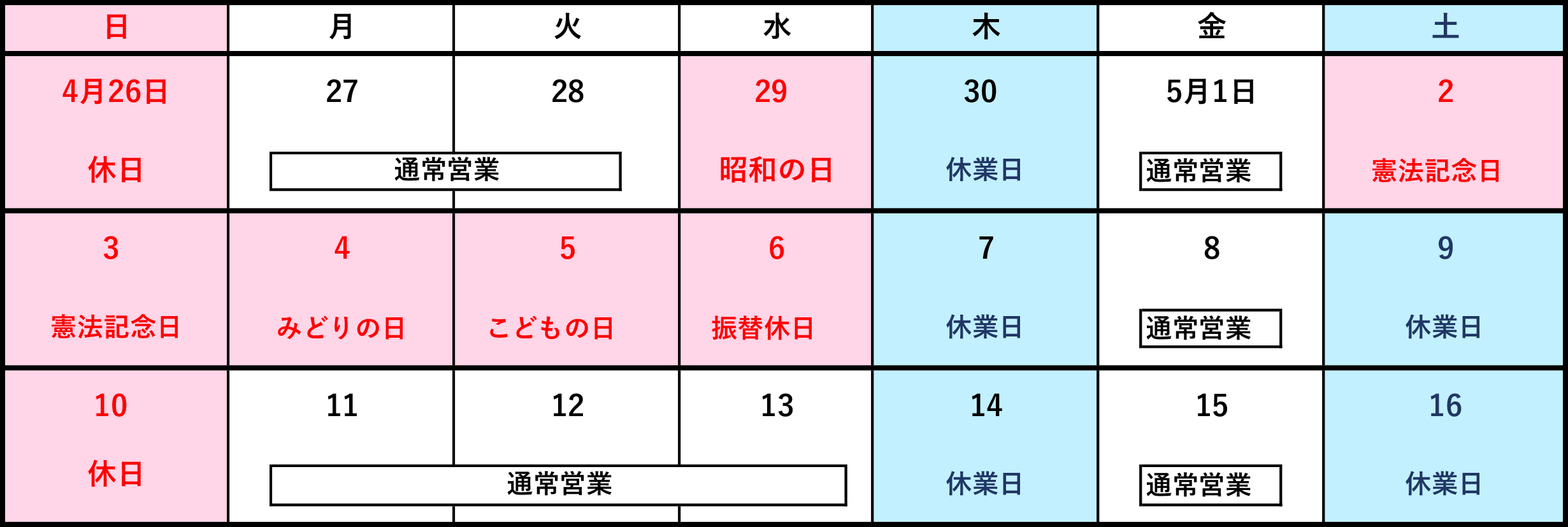 【2026年|GW期間中の休業日・営業日】